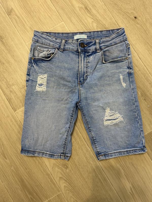 Стан гарний, проте трішки потягнуті резиночки (показала на фото) Хороший варіант для дому Джинс тоненький, тягнеться Талія 34 см, бедра 41/46 см, довжина 46 см