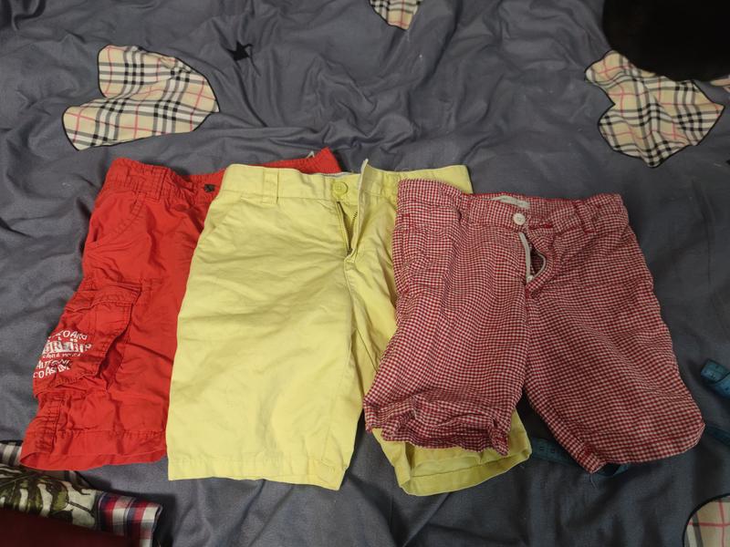 три пари шортів на хлопчика ,на 5-6 років. талія регулюється резинку зсередини. в гарному стані. жовті майже нові,один раз вдягнені. ціна вказана за набір