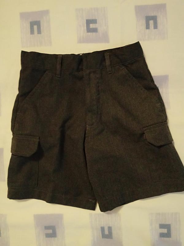 Шорти в школу-6-7 років,в відмінному стані,є утяжка.Сині в подарунок. Довжина по боковому шву-33,5см,в поясі-25см,бедра-36см. Питайте,відповім на питання.