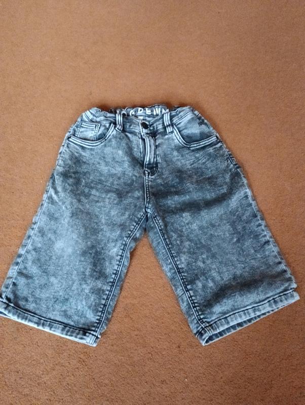 Сірі джинсові шорти на регульованій резинці на хлопчика ростом до 158 см.Заміри: пояс 32 см,можно зробити менше або більше,стегна 45 см, довжина 50 см,кроковий шов 28 см,ширина внизу 21 см