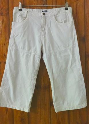 Джинсові бриджі на хлопчика у відмінному стані. Розмір: XL. Довжина по боковому шву: 66см. Посадка: 25см. Ширина по талії: 39див. (всередині гумка і гудзик для зменшення обсягу). Ширина по стегнах: 50см.