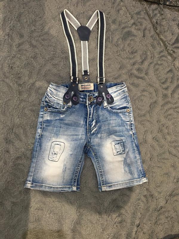 Супер модні джинсові шорти на підтяжках (їх можна зняти) Втягуються по боках Розмір на 1 - 1,5 року Стан ідеальне