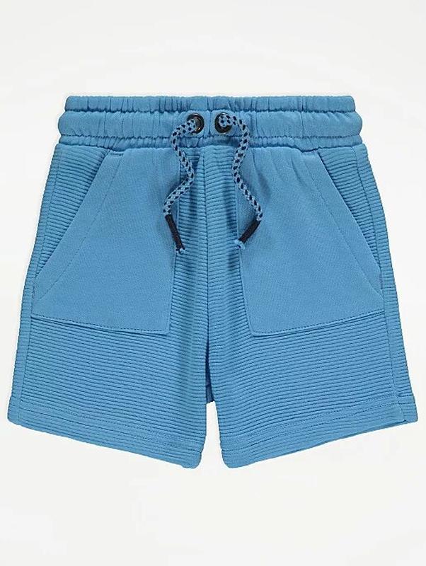 Шорти для хлопчика з міцного рифленого трикотажу з накладними кишенями і функціональної куліскою. Склад тканини - 100% бавовна. Колір - блакитний. В наличии : 3-4 года (98-104 см); 4-5 года (104-110 см) Замеры: на 3-4 года: Длинна - 28 см ПОТ - 24 - тянутся до 30 см ПОБ - 32 см шов сиденья спереди - 21 см (вместе с поясом) шов сиденья сзади - 27 см (вместе с поясом) шаговый - 11 см ширина штанины внизу - 17 см на 4-5 лет: Длинна - 30 см ПОТ - 25 - тянутся до 32 см ПОБ - 33 см шов сиденья спереди - 21 см (вместе с поясом) шов сиденья сзади - 27 см (вместе с поясом) шаговый - 12 см ширина штанины внизу - 18 см