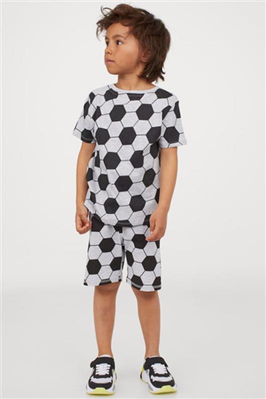 Шорти для хлопчика/трикотаж H&M на 5-6 років на р.116. Шорти завдовжки до коліна з бавовняного трикотажу з набивним малюнком. Обтягнутий еластичний пояс із куліскою та несправжніми передніми кишенями. Склад. Бавовна 100%.