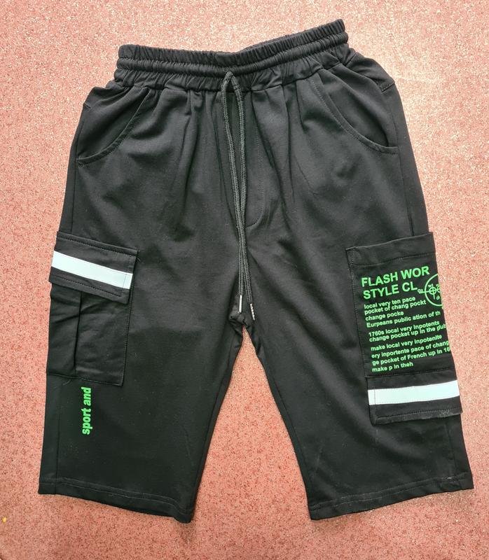 трикотажні шорти пояс гумка, з чинним шнурком, з накладними кишенями і сверотражающей стрічкою. для хлопчиків 10-16 років