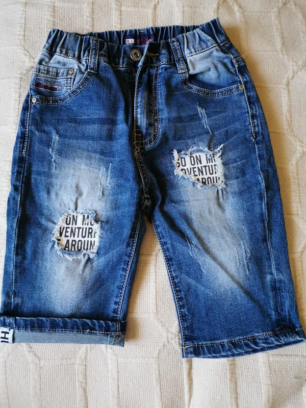 Джинсовые шорты на резинке для мальчика 7-8лет, длинна 44см,шаг - 22,ширина 26-32 см
