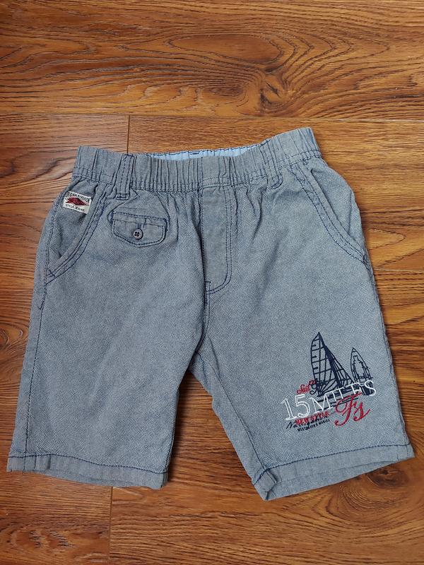 Шорті у доброму стані. На 6-7р. 100%котон. Пояс 27, стегна 37, довжина 34, ширина штанини внизу 17.