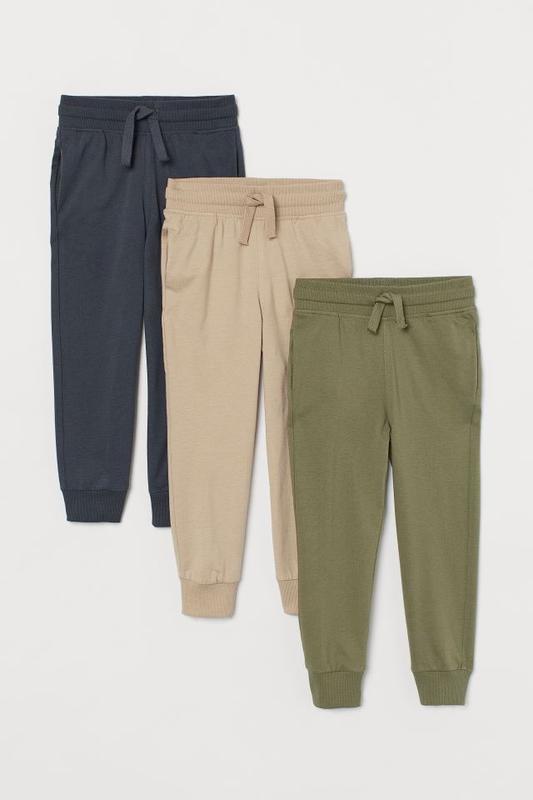 Класні спортивні джоггеры без начісування H&M Відмінна якість за відмінною ціною! Джоггери з м'якого трикотажу з органічної бавовни з гумкою на талії, кишенями у бокових швах і рельєфною трикотажною манжетою знизу. Виворіт без начісування і петельок. Розміри в наявності: - світло-бежевий: 110, 122, 128 - зелений хакі: 110, 116 - графітовий: проданий. Ціна вказана за одні джогери. Ціна кінцева. 128: ПОТ 28,7 ПОБ 35,3 Загальна довжина 77,6 Крокова 52,6