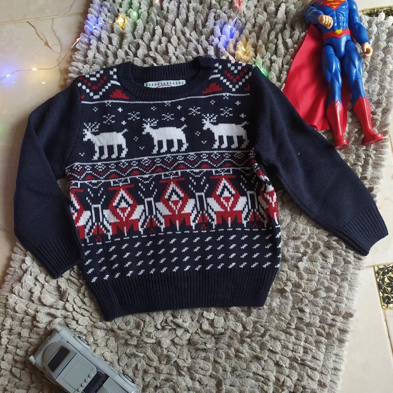новорічний светрик на хлопчика 4-5р,104-110 см, заміри довжина 41,ширина 35,рукав 35,