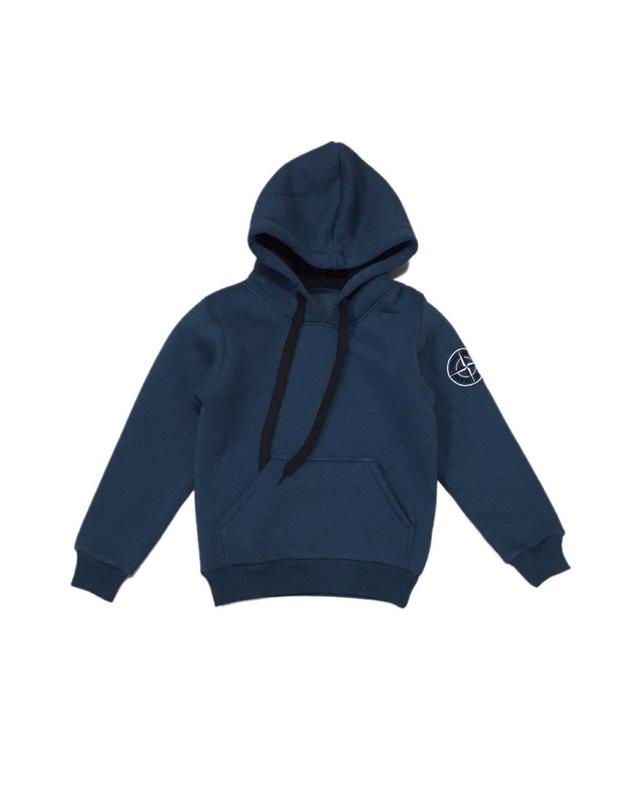 Худі для хлопчиків з триниткового футера з щільним начосом. Модель з довгими рукавами на манжетах, капюшоном, кишенею-кенгуру, виконана з однотонного полотна різних кольорів, з шнурком в капюшоні. Худі відмінно комбінується з штанами в тон або джинсами, що дозволяє створювати різні образи. Можна носити прохолодною осінню або взимку під верхній одяг. Полотно щільне, має гарні теплоізоляційні властивості, при правильному догляді може давати незначну усадку після прання.