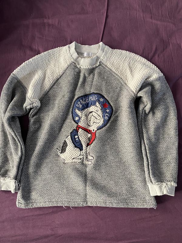 Светр для хлопця. Стильно виглядає за рахунок вʼязки , необроблених швів та малюнку. Брала на фотосесію с собакою. Син трохи поносив, але стан гарний. Швидко виріс з нього.