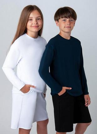 Лонгслів для підлітків — футболка з довгим рукавом, такі речі виготовляються з тонкої трикотажної тканини і мають округлий виріз під горло. Дана модель виготовлена з полотна "Стрейч-кулір піньє" - тканина легка та приємна на дотик. Полотно: стрейч-кулір піньє Склад: 95% бавовна, 5% еластан ,,2834