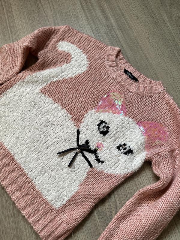 Свитер вязаный девочке 4-5 лет с котиком