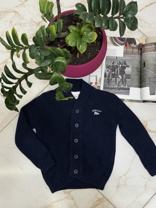 Дитячий теплий вʼязаний кардиган темно-синього кольору на хлопчика 3 років. Стан - ідеальний. Склад: 100% бавовна.