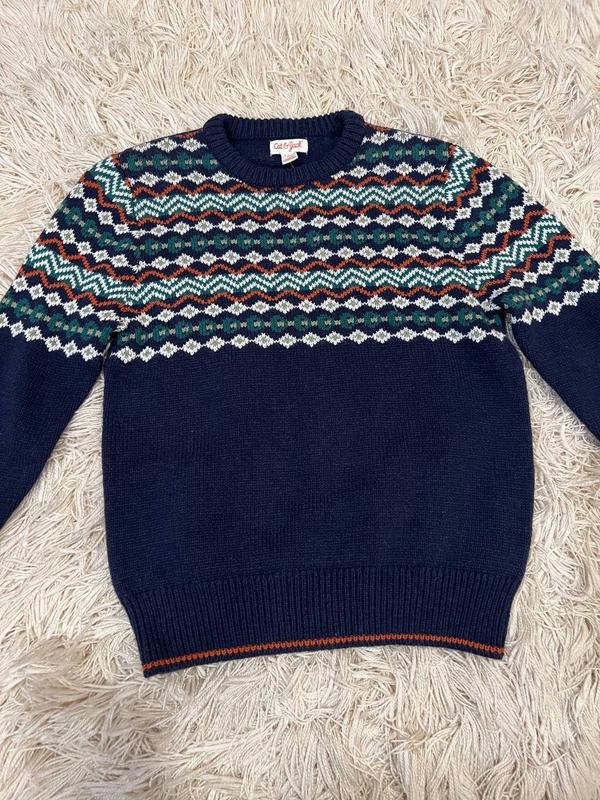 Нова кофтинка/светрик для хлопчика 6/7 років , склад тканини видно на фото з внутрішньою біркою . Фірма Cat&Jack , куплений в Америці, може бути на подарунок є бірка . Заміри Спинка 34 см Рукав 50 см Довжина кофтинки 50 см Напів обєм грудей 40 см