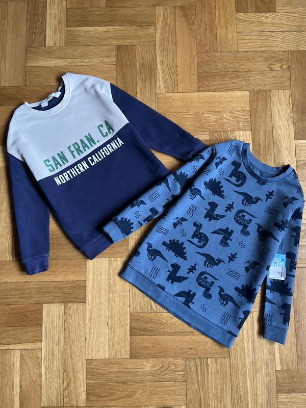 Набір світшотів для хлопчика в розмірі 5-6 років.Перший H&M, двуніть, пєтєлька, в чудовому стані, пог 39 см, довжина 44,5 см, рукав від горловини 46 см. Другий Matalan, новий, з біркою, утеплений з начесом, пог 36 см, довжина 48 см, рукав від горловини 45 см. Ціна вказана за набір. Продаж набором
