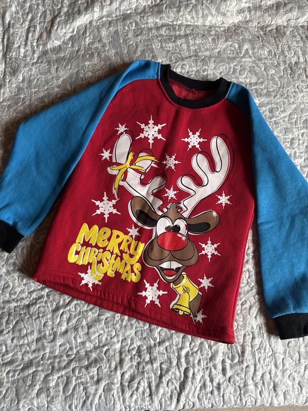 Світшот на флісі з новорічними ,різдвяними принтом.