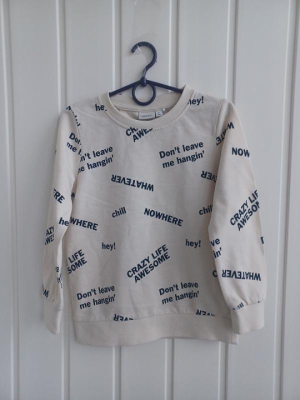 Дитячий світшот в ідеальному стані. Дуже класно виглядає на дитині. Колір - молочний. Розмір 110 см на 5 років. Бренд Name it, склад: 35% бавовна, 65% поліестер.