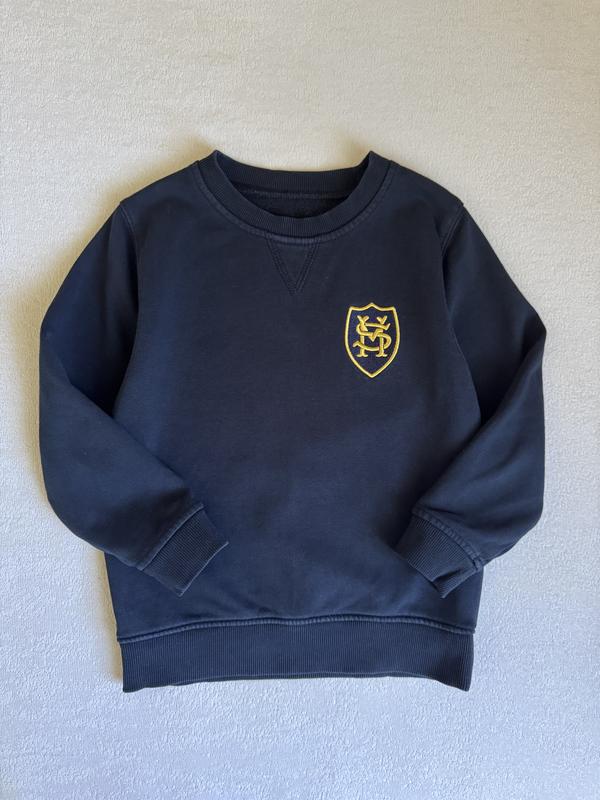 Мінімальне замовлення 100грн! Стильний світшот на хлопця від M&S. Колір темно-синій з вишитою емблемою спереду (колір вживу насиченіший, фото засвічують). Тканина двонитка на флісі, тепленька, тягнеться. 80% бавовна, 20% поліестер. Розмір (4-5р). Заміри: Плечі - 30си Груди напівобхват - 37см Рукав - 38/39см Напівобхват низу - 31см Довжина - 46см Стан ідеальний! Відправка кожен день Нова і Укрпошта