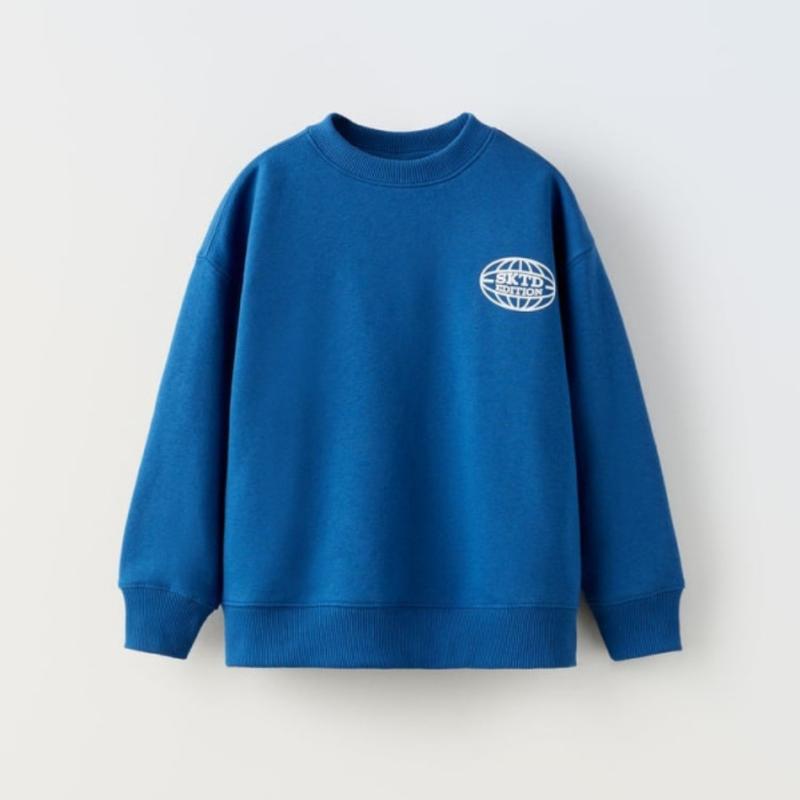 Світшот тринитка насиченого синього кольору з легким начісом від бренду Zara в наявності розмір 📌164 13-14 років між рукавами 54 довжина по спині 65 довжина рукава від горловини 73