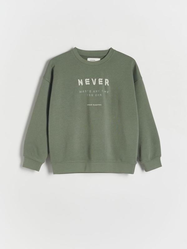 Світшот вільного крою з приємного на дотик трикотажу з високим вмістом бавовни (80% бавовни, 20% поліестра): кругла горловина, оформлена гумкою, занижена лінія плечей, довгі рукави, манжети на рукавах, декоративний принт. Колір хакі, підійде на зріст 158-164 см. Світшот у відмінному стані, без плям, дірок та кашлатань ( тканина дуже якісна і не кашлатиться), тканина двунитка. Заміри: довжина 67 см, ширина плечей (приспущені) 57 см, довжина рукава 52,5 см, напів об'єм грудей 52 см. Пересилаю Новою поштою і Укрпоштою, в тому числі і через безпечну оплату.