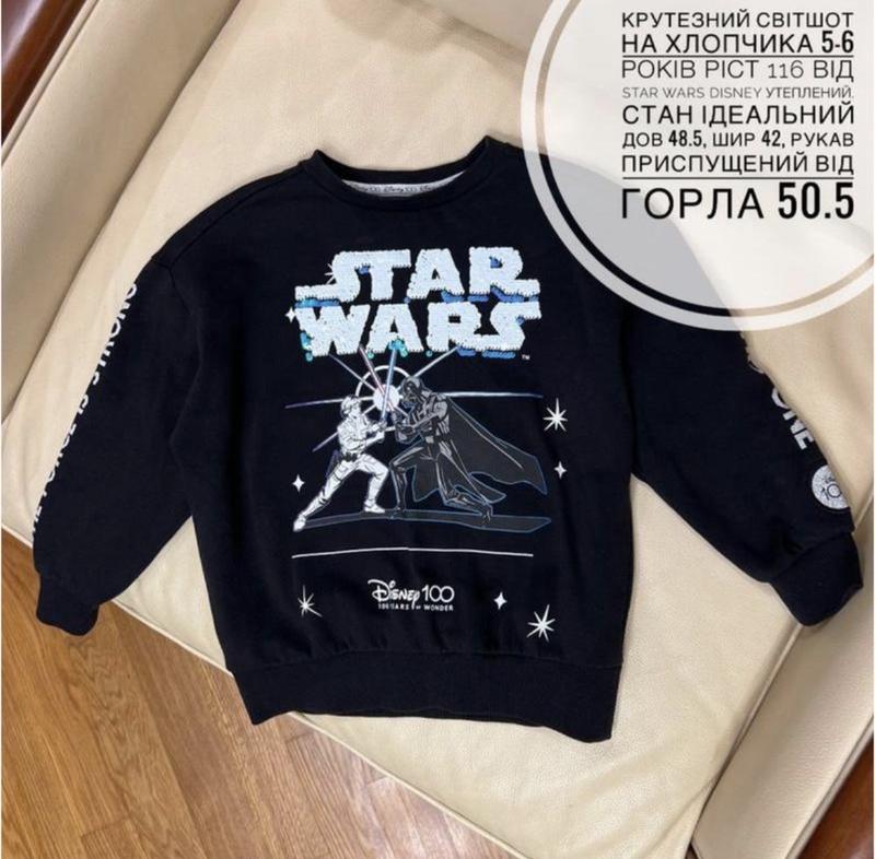 Світшот star wars 5-6 років ріст 116 чорний в принт, утеплений на хлопчика