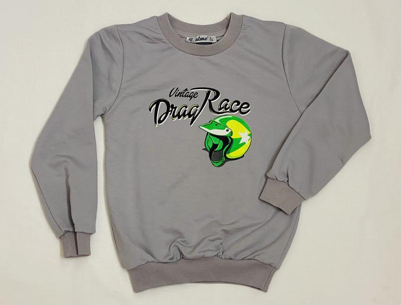 Світшот на хлопчика 4-6 років. По бірці 6/116. Заміри: довжина рукава від плеча - 40,5 см, довжина по спинці - 41 см, від пройми до пройми - 33 см.