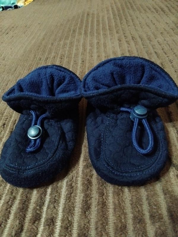 Мягкие тапки,чуные.Есть резиночка, затягиваются.Внутри флисовые. Длина по подошве-14см, внутрь-14,5см.
