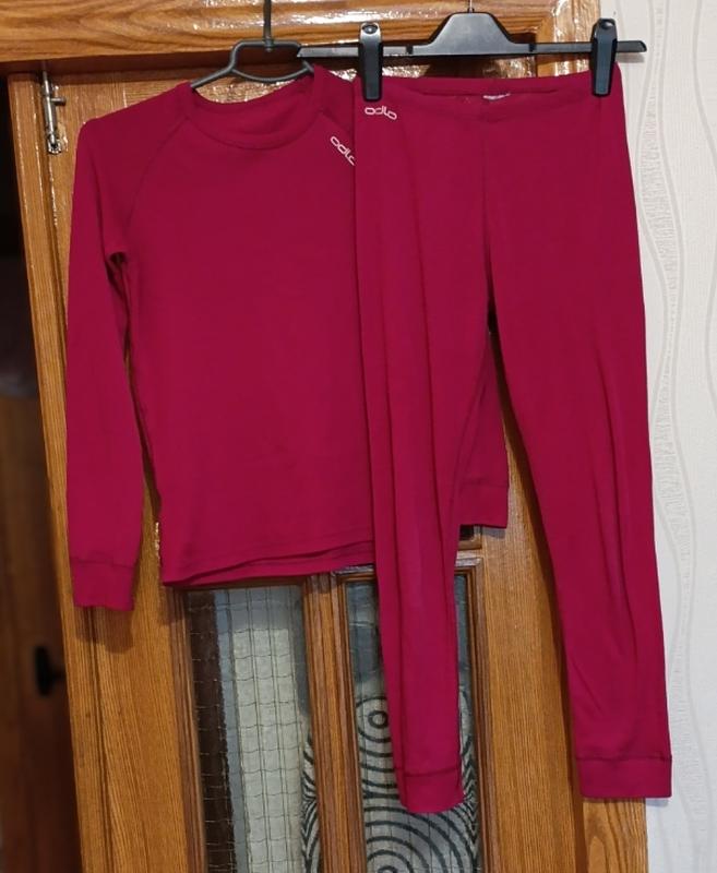 Термобілизна, яка є комплектом термобілизни Odlo. Набір включає сорочку з довгими рукавами та легінси, призначені для забезпечення теплоізоляції та відведення вологи під час фізичної активності в холодну погоду. Призначення: Термобілизна використовується як базовий шар одягу для занять спортом, активного відпочинку або повсякденного носіння в холодну пору року. Особливості: М'яка тканина, анатомічний крій та плоскі шви допомагають мінімізувати натирання та забезпечують комфортну посадку, що не сковує рухів. середини є легенький начос тягнеться добре розмір не пише, бірка зрізана 📏 кофта довжина 55см довжина рукава від шиї 64см в грудях півобхват 40см 📏 штани довжина 85см шаговий крок 65см в поясі півобхват 30см в бедрах півобхват 45см