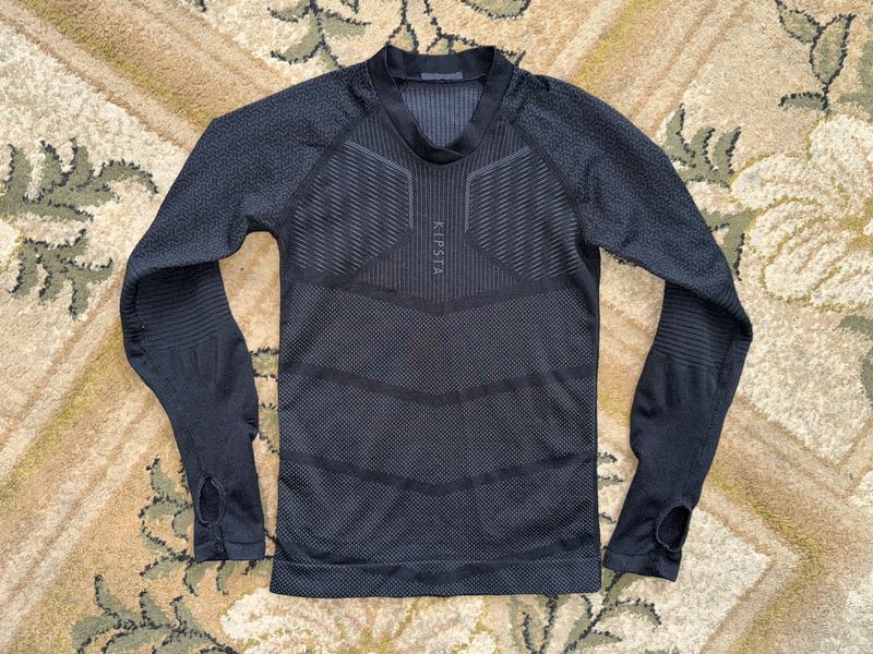 Термобілизна кофта Kipsta. На зріст 110-116см. 5-6 років. В хорошому стані. Є отвір для великого пальця. Для футболу та інших спортивних занять в холодну пору року.