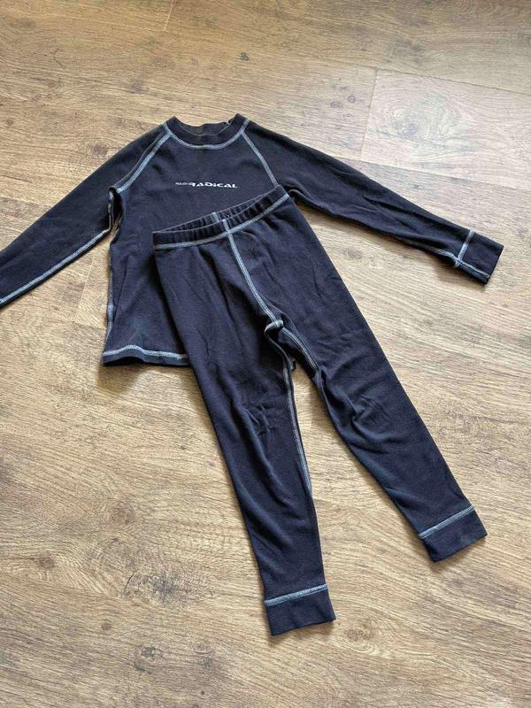 Комплект чорної термобілизни дитячий, на флісі, розмір 122/128, кофта довжина 44, рукав від горловини 48, під мишками 30, штани довжина від резинки 62, внутрішній крок 44, в гарному стані без дефектів