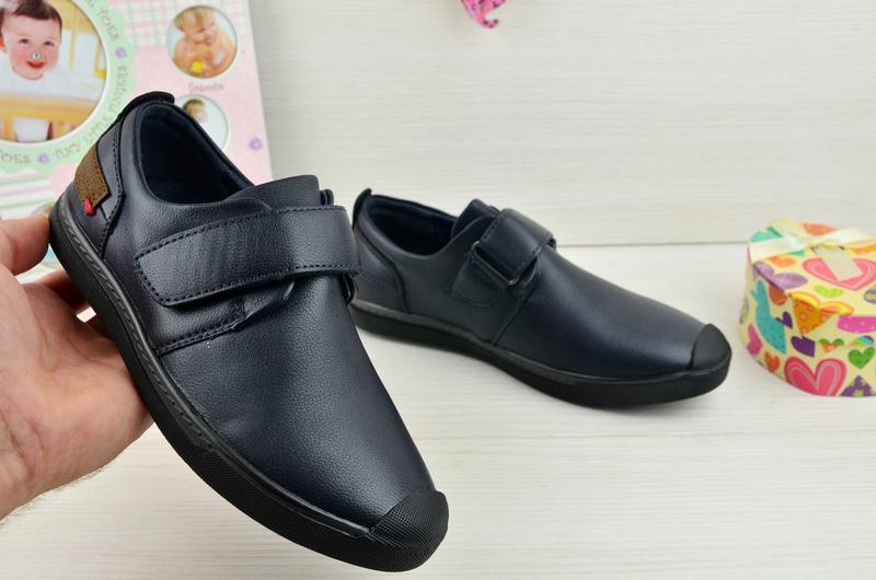Код 2711 Туфли для мальчика верх эко-кожа внутри стелька кожа +супинатор противовоударный носок на липучке цвет темно синий р-ры в наличии 33-22,0см