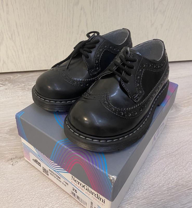 Туфлі для стильного хлопчика. Виробник відомий бренд Nero Giardini Італія. Всередині шкіра ззовні лакована штучна шкіра.