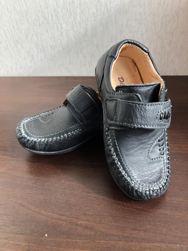 Зручні шкіряні туфлі для хлопчика. На ліпучках, все в ідеалі. Взуття ідеальне, одягали лише на дитячі свята. Розмір - 25.