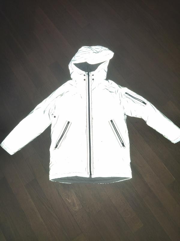 Розмір 128-134. Стан дуже хороший, на світловидбиваючій стороні є трохи подряпин, але вони малопомітні в трошки наповнювач збит в деяких місцях. Довжина 82, рукав від горловини 60, пог 48