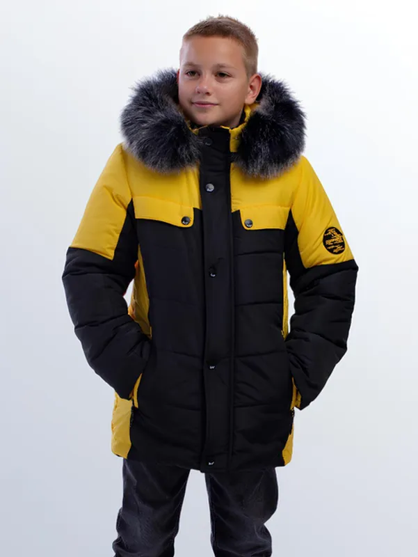 Яскрава зимова тепла куртка для хлопчика Розміри: 34, 36, 38, 40, 42, 44, 46 (йде на зріст від 120 до 165) Дивіться розмірну сітку на 3 фото. Матеріал верху: Щільна плащівка Торонто; Підкладка: Нейлон; Наповнювач: Синтепон щільністю 120 г/м2 + силікон 120 г/м2; Хутро: Штучне, гарної якості, знімається; Сезон: зима. Універсальна куртка призначена для холодної погоди до -25*С. Зручний крій, який не обмежує руху, забезпечує максимальний комфорт для вашого хлопчика. Куртка має 2 зовнішні та 1 внутрішню кишені на блискавці. Центральна планка на кнопках захищає від проникнення вітру всередину куртки і надає виробу стильний і сучасний вигляд. Зовнішній матеріал куртки міцний і відштовхує воду. Внутрішня підкладка - нейлон, забезпечує легкість рухів. Капюшон може бути відстебнутий. Опушка зі штучного хутра «Єнот» знімається. Рукав із внутрішнім трикотажним манжетом - довяз. Прання - делікатний режим до 40* С.