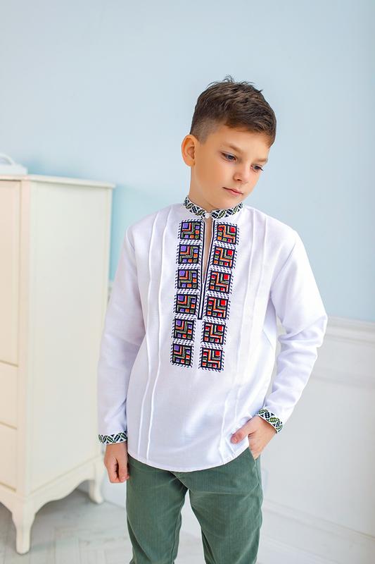 Розмірний ряд з 86 по 164 Тканина домоткане полотно, Вишивка машинна +защіпи спереді, що надає виробу елегантності та вишуканості. Оригінальний орнамент спрямовую ілюзію зору гри кольорів.