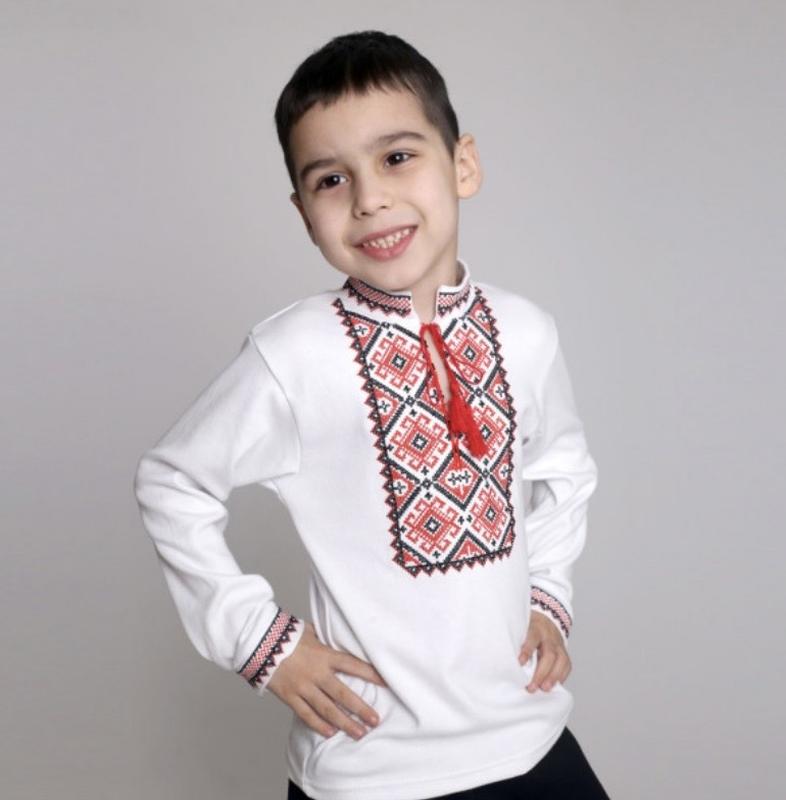 Розміри: 98-122 Виготовлена з натурального, м’ягкого бавовняного полотна. Є приємна до тіла, не сковує дитячих активних рухів. Модель оздоблена традиційною вишивкою червоними нитками.