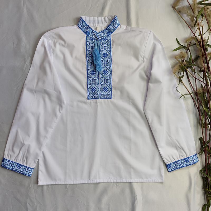 Вишита сорочка для хлопчика ◽Ціна 600 грн ◽ Тканина: сорочкова (поплін) ◽Колір: білий ◽Розмір: 128-134 (8-9 років) ◽Заміри: ПОГ 43 Довжина 56 Довжина рукава 48,5