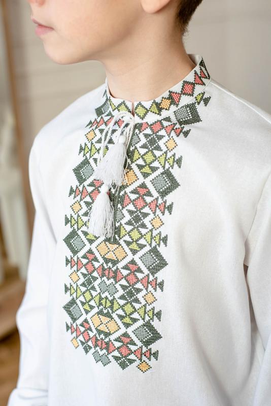 Дитяча вишиванка для хлопчика геометрична вишивка біла вишиванка на хлопчика
