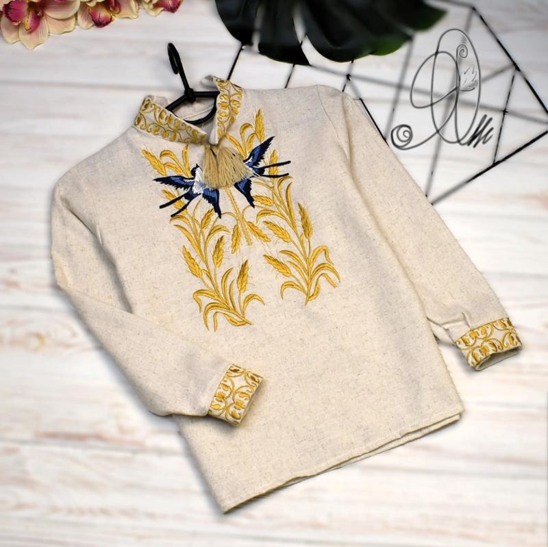 Вышиванка для мальчика лён пшеница бежевая песочная