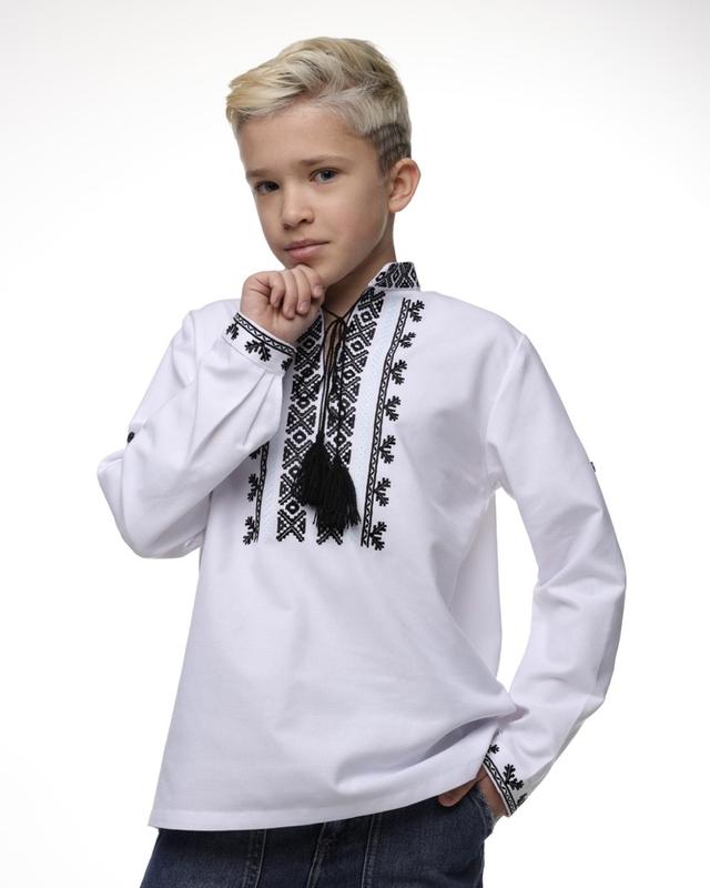 Тканина білого кольору, вишивка чорна з бірюзовим. Рукавчик підкочується:) Особливості: Натуральна тканина – домоткане полотно , комфорт на весь день Вишитий орнамент, який занурює нас у культуру прекрасної Полтавщини Універсальний дизайн – пасує як на свято, так і на кожен день