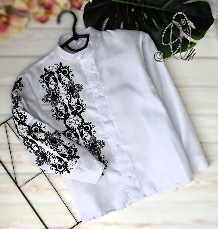 Вишиванка на хлопчика "довгі кучерики+рукав" білі на полотні .