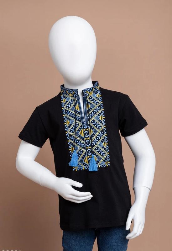 Вишиванка для хлопчиків Колір: чорний Матеріал: котон (вишивка) Країна виробник: Україна Розмірна сітка: 6-12 років Заміри: 6 років - рукав 10 см, плечі 30 см, ПО грудей 33 см, довжина 44 см. 8 років - рукав 11 см, плечі 31 см, ПО грудей 35 см, довжина 46 см. 10 років - рукав 12 см, плечі 32 см, ПО грудей 37 см, довжина 49 см. 12 років - рукав 13 см, плечі 34 см, ПО грудей 40 см, довжина 51 см. Робимо заміри однієї ростовки. Припустима похибка 1-2 см *ПО-напівобхват