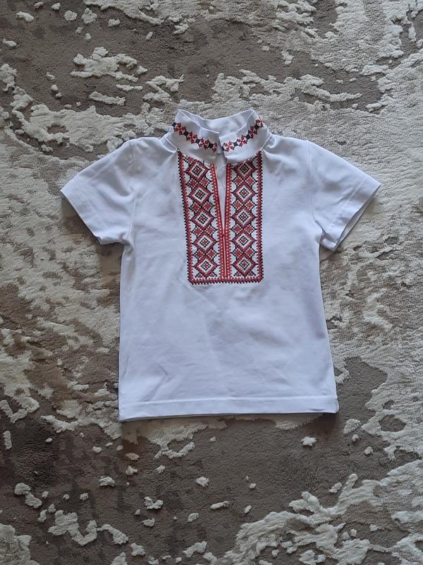 Вышиванка на мальчика. Одета один раз,стан новой вещи. Длина 34 Ширина под подмышками 25 Плечи 23 На 1,5-рочки