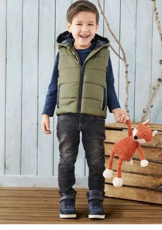 Немецкое качество. Затяжка (5 фото). Застежка на молнию, плюс защищено планкой на кнопках. Светоотражающие элементы на карманах и сзади С. Плечи 24см, пог 35см, высота 38см (сзади немного удлиненная). Жилет болоньевый, утеплен, подкладка сверху флисовая (до талии), ниже талии-полиестровая. Утеплитель не деформируется от стирок, держит тепло и не пускает внутрь холодный воздух. Застегивается на молнию с защитой подбородка. По бокам карманы.