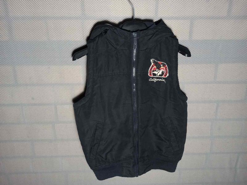 Відмінний теплий жилет на резинці по низу. Пог 39див, довжина по спинці 45см, по низу 32см. Капюшон не знімний.