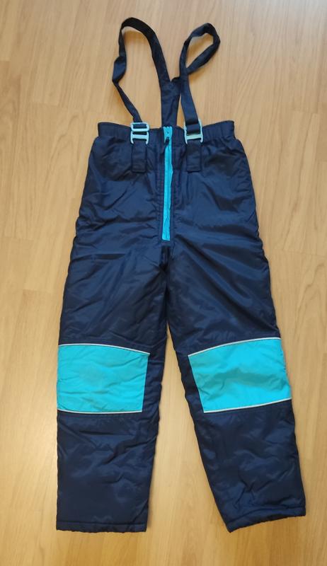 Ветро-и водонепроницаемая поверхность, герметические швы, светоотражающие детали, пояс на резинке с завышенной талией, съёмные регулируемые подтяжки, с защитой от попадания и задувания снега. Размер: 134. Замеры: ширина пояса-32(тянется до 36 см), ширина бёдер-45, длина-86, длина внутреннего шага-57 см. Состояние очень хорошее, без нюансов.