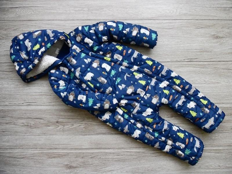 Розмір вказано 18-24 місяці,можна носити довше. Сезон:Холодна осінь-зима. Зовні водовідштовхувальна тканина,всередині на синтепоні,флісова підкладка. Заміри: Довжина від плеча до низу 76 Ширина під ручками 34 Рукав від плеча 34 Плечі 28 Довжина від плеча до памперса 51 Крок 26 Є такою ж на розмір менше.
