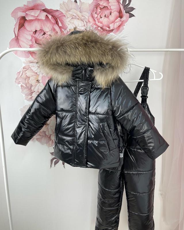 Зимовий комплект з чорного лаку монклер хутро єнота